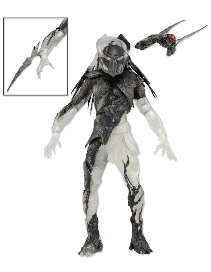 The Masked City Hunter from Predator 2 includes throwing disc, spear, and bloody skull & spine.