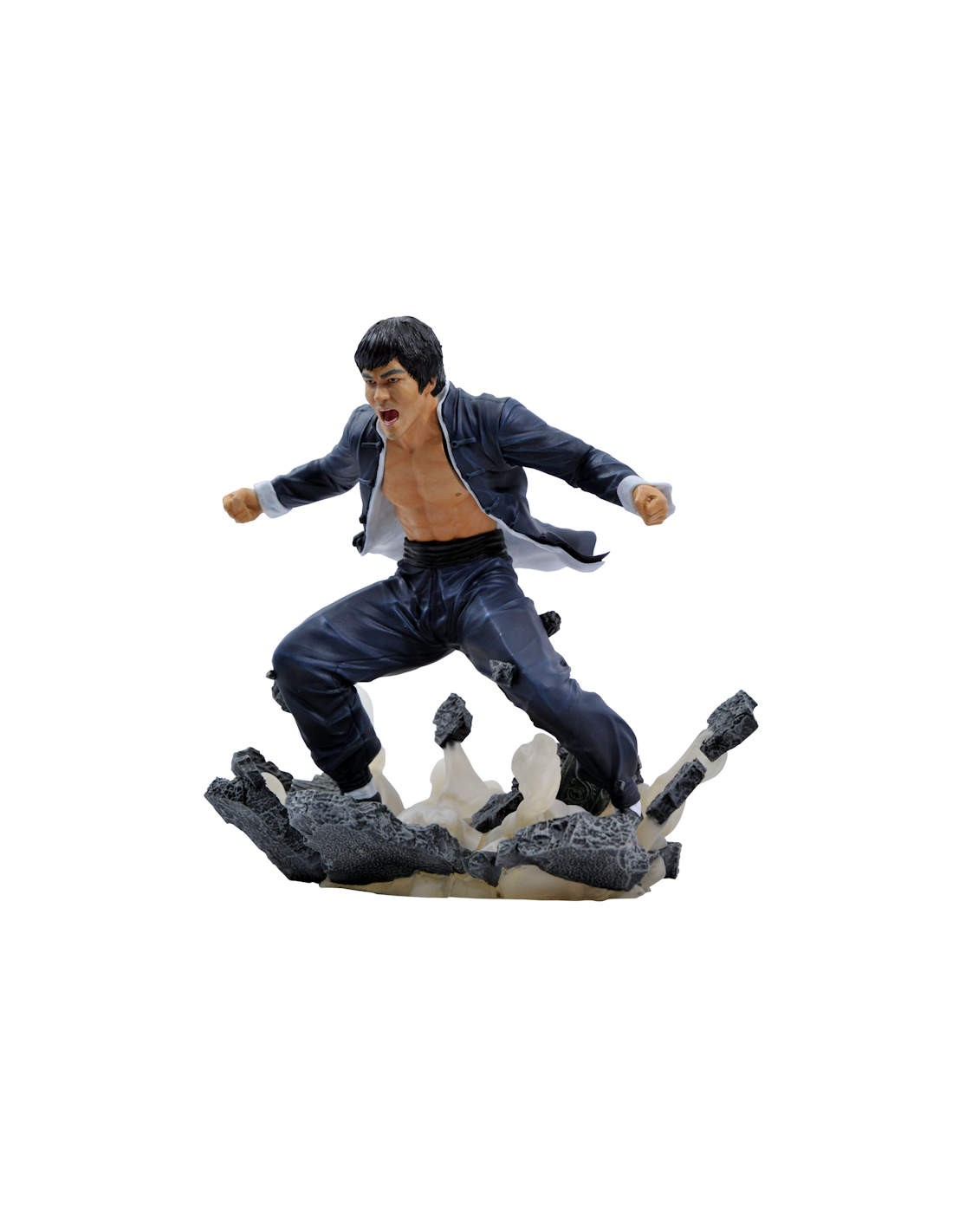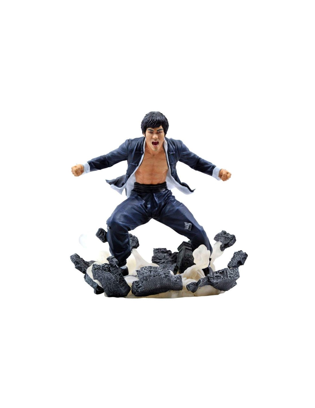 The master has landed! The latest entry in the Bruce Lee Gallery Diorama series captures the superstar in action, wearing a blue coat and pants and shattering a stone tablet with one stomp of his feet. Made of high-quality PVC, this approximately 9" sculpture features detailed sculpting and paint applications and comes packaged in a full-color window box. Designed by Nelson X. Asencio and sculpted by Rocco Tartamella!