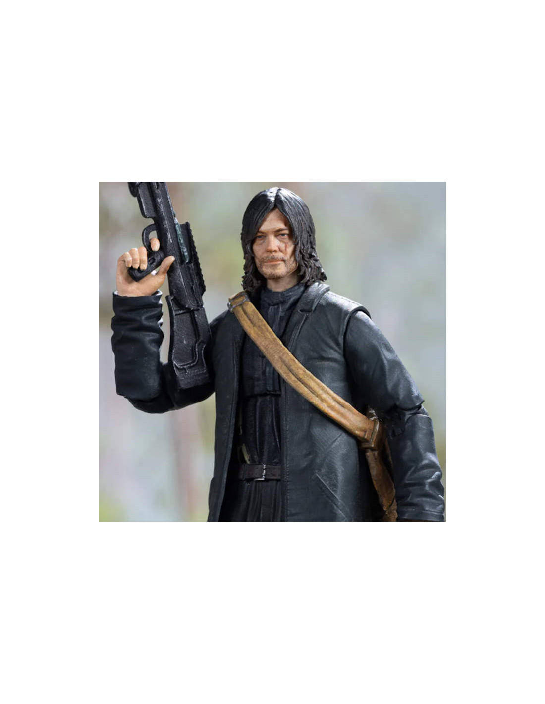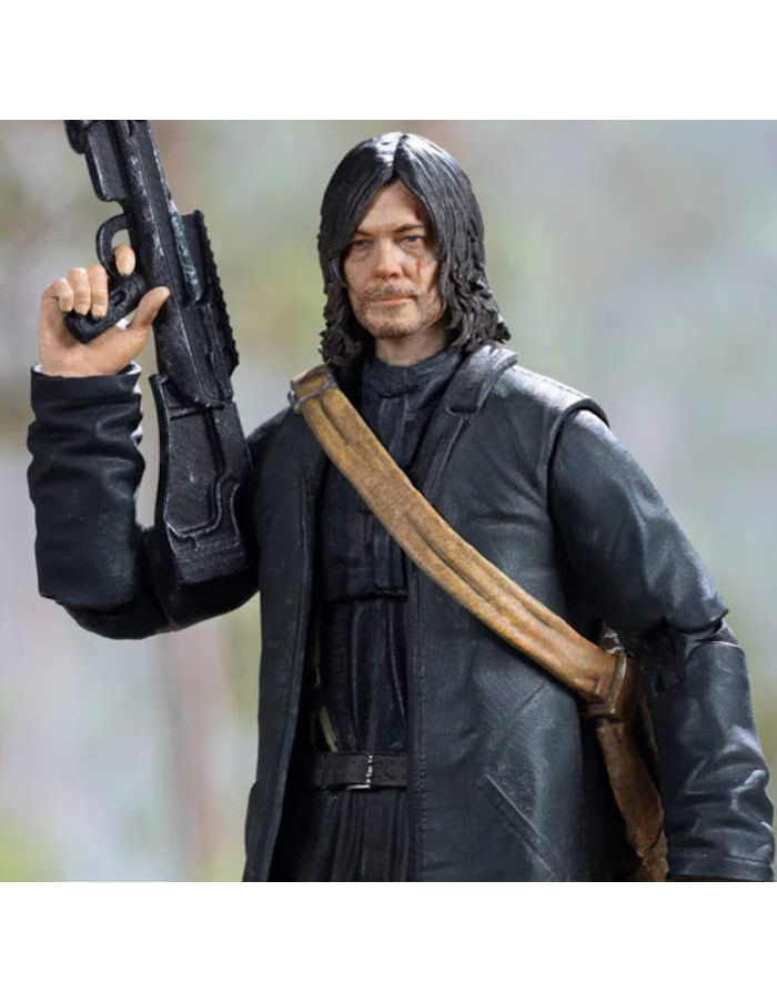 In terms of accessories, Daryl comes with a harpoon and a crossbow. The finely detailed green camouflage pattern and weathered effects on the crossbow are subtly portrayed, always accompanying Daryl at the forefront of challenges.