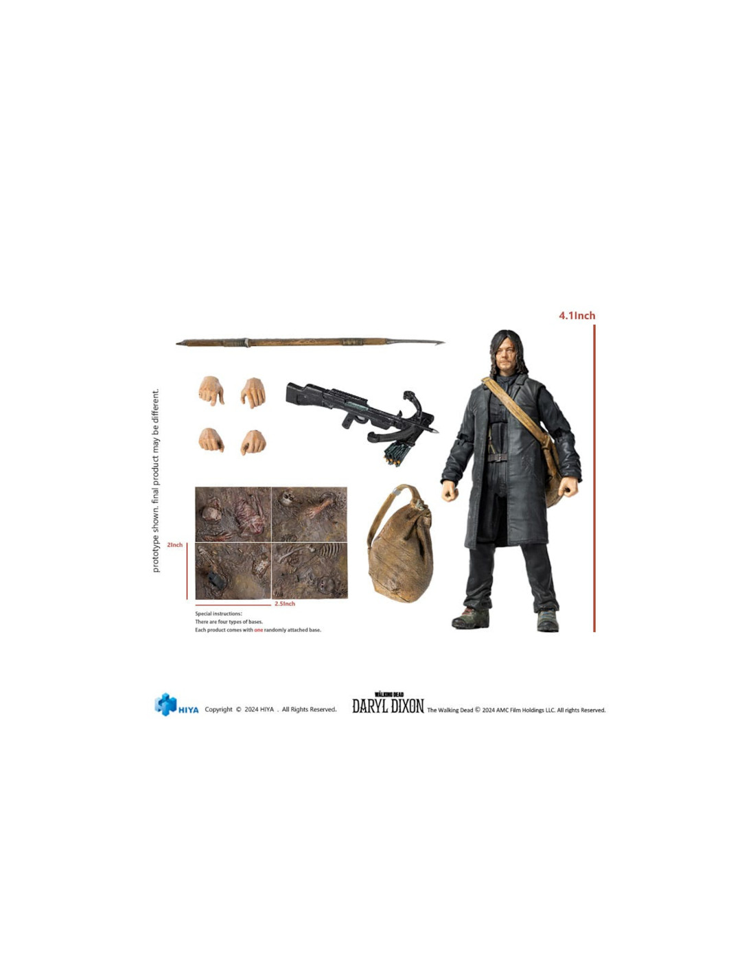 This brand new Daryl Dixon action figure stands 104mm tall, faithfully reproducing the facial details of Daryl from "The Walking Dead: Daryl Dixon". Dressed in a black trench coat, mud-covered marching boots, and a detachable canvas bag slung diagonally, all faithfully recreated even in the 1/18 scale.