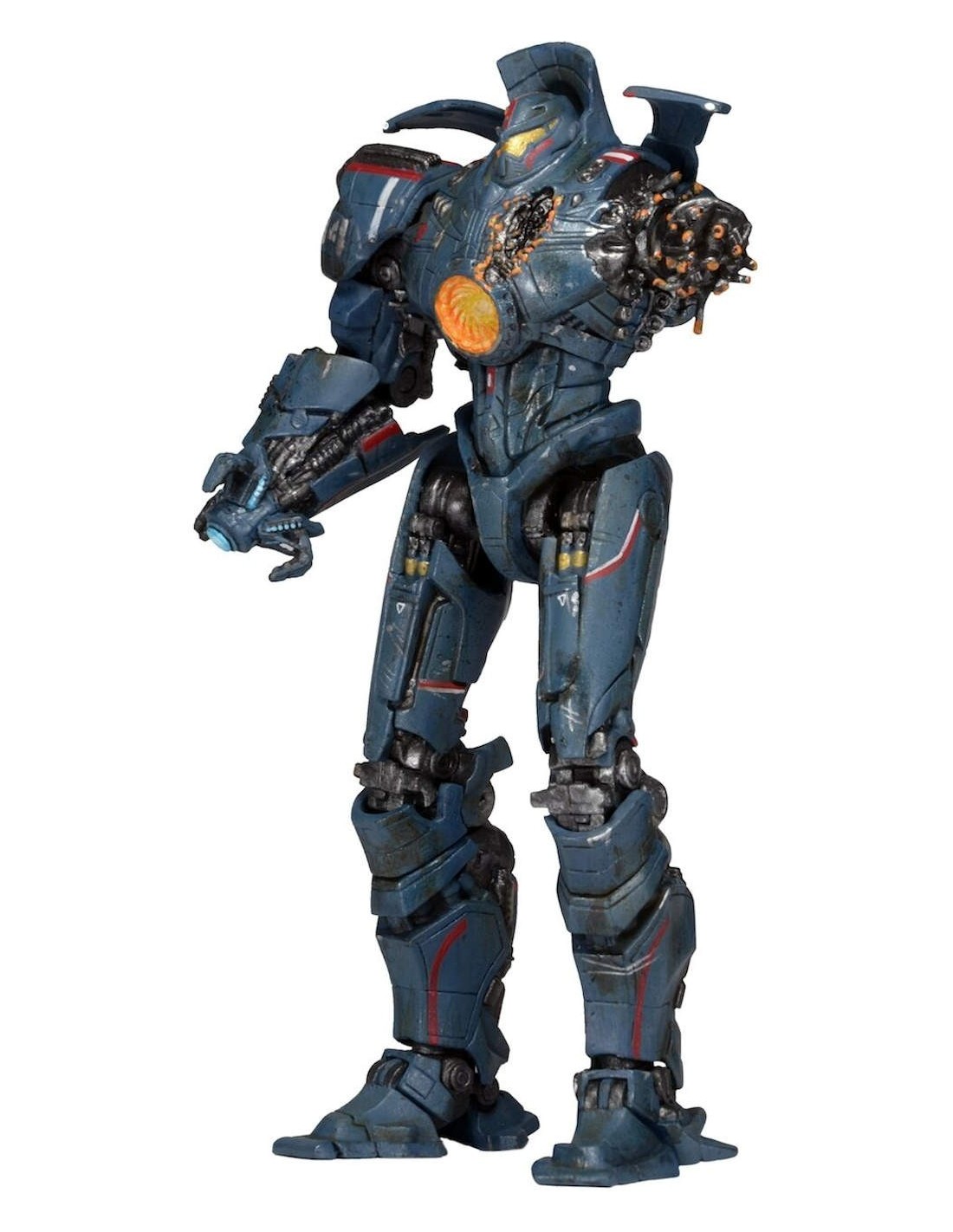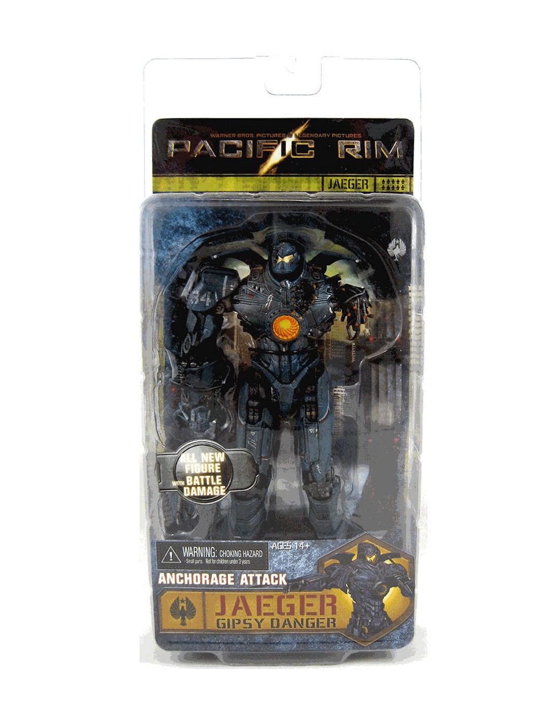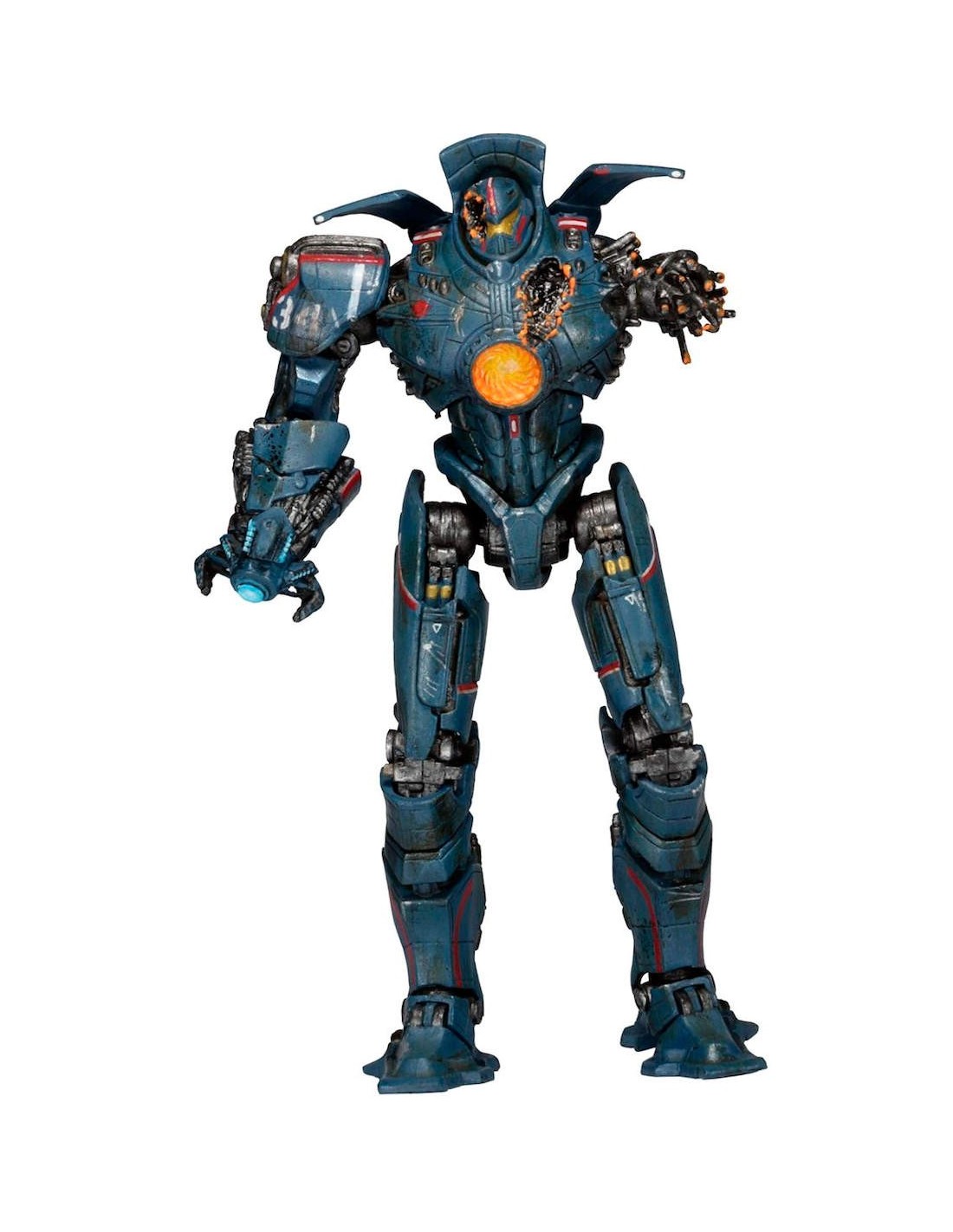 Anchorage Attack Gipsy Danger features battle damage from its fight with Knifehead at the beginning of the movie, and uses new, unique tooling not seen on any previous Gipsy Danger release. It comes with an interchangeable right forearm that lets you switch between plasma gun and normal hand.