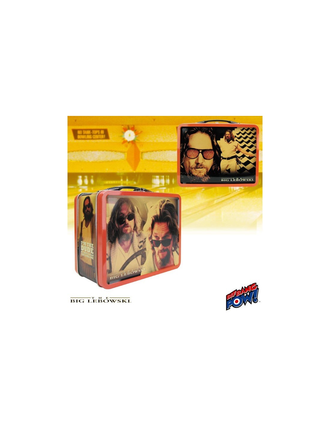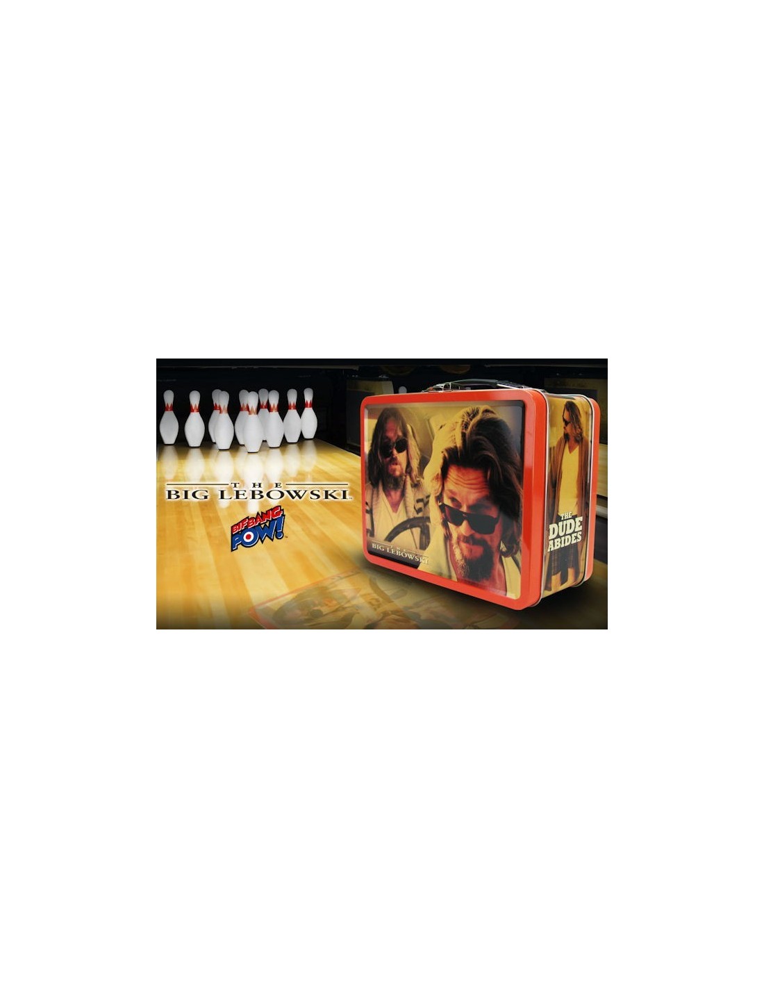 Bif Bang Pow!'s awesome line based on The Big Lebowski movie continues with this fantastic tin tote. Featuring movie-specific artwork this tin tote measures 8 5/8-inches wide x 6 3/4-inches tall x 4-inches deep. It's a terrific collectible that makes a great gift for any The Big Lebowski admirer! Ages 18 and up. Jeffrey "The Dude" Lebowski is a real laid-back kind of guy. He enjoys "bowling, driving, (and having) the occasional acid flashback." In the classic film The Big Lebowski, this humble pacifist and his bowling buddies become entangled in a web of embezzlement, supposed kidnapping, and White Russians.