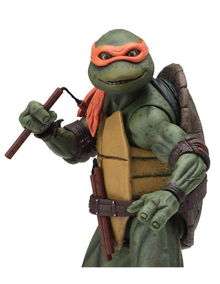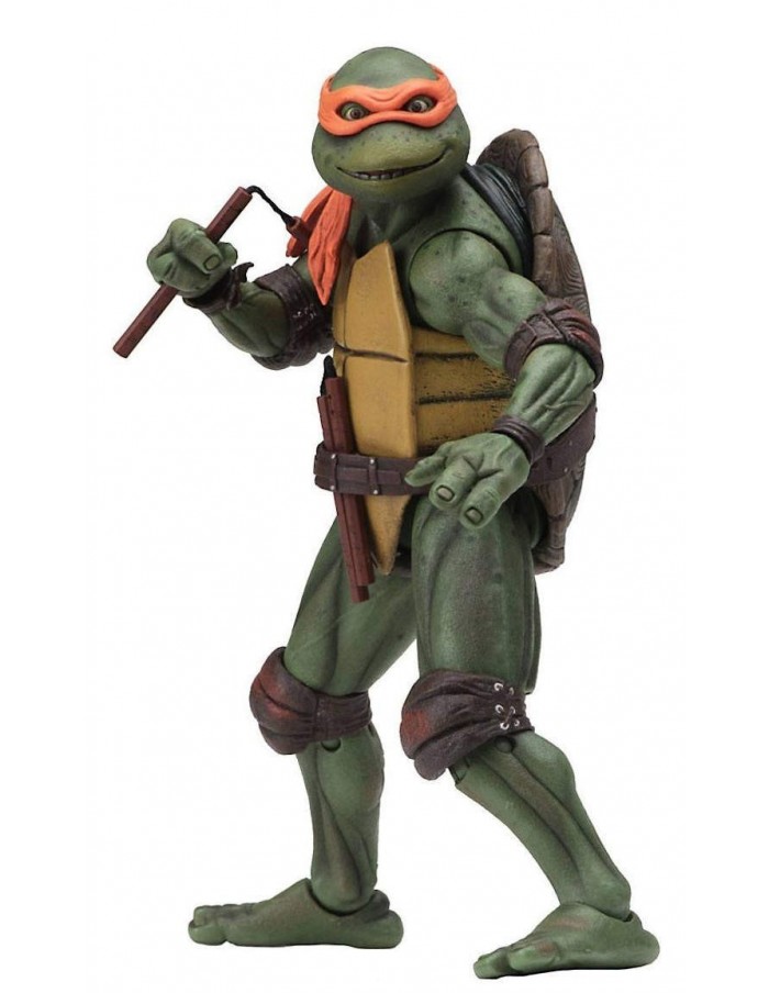 From the 1990 "Teenage Mutant Ninja Turtles" movie comes this detailed action figure. It stands approx. 18 cm tall and comes with accessories in a window box.