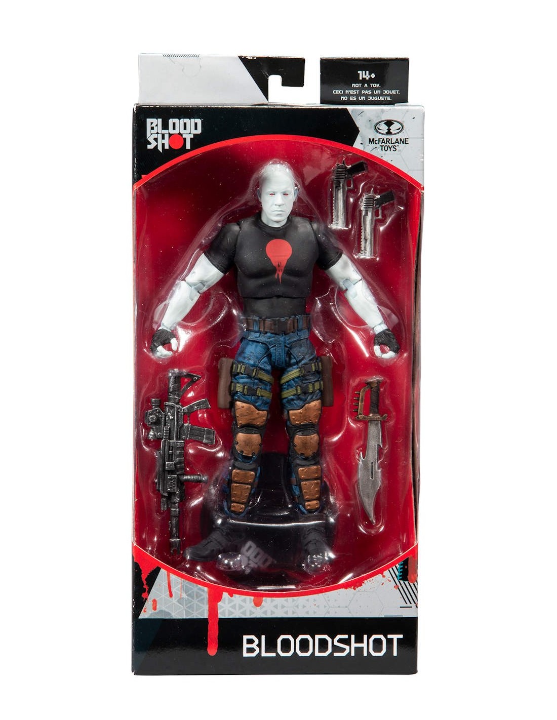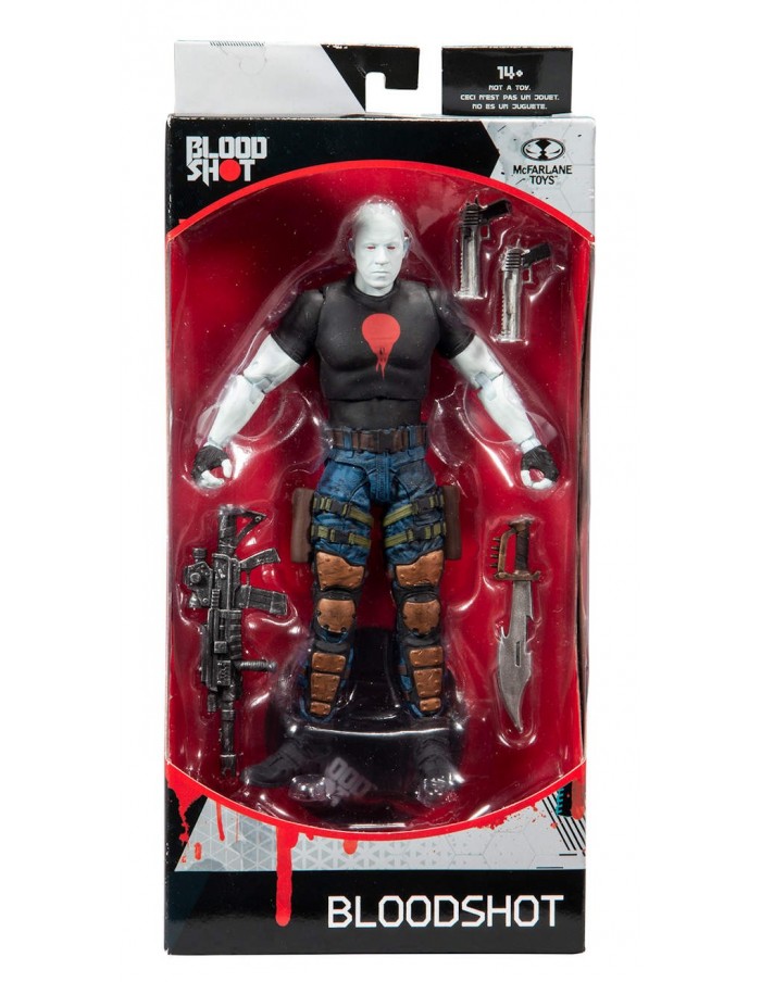 ► Figure showcased in Bloodshot themed window boxed packaging