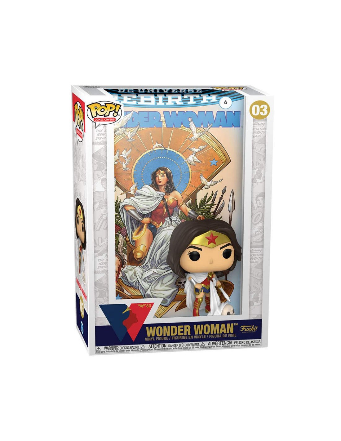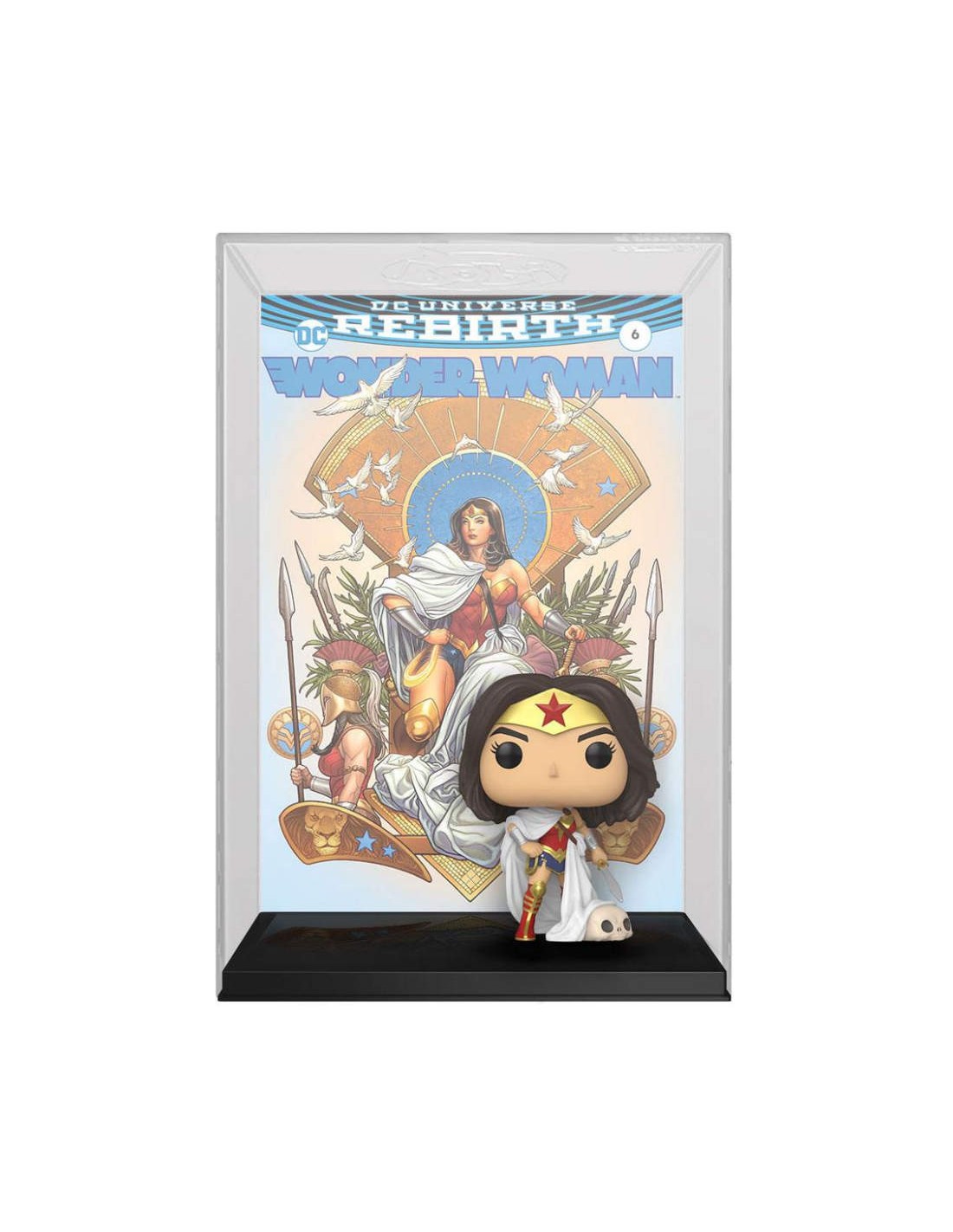 Wonder Woman is reborn, emerging to renew her mission as a protector of Earth. Collect one of DC Comics' most recognizable heroes with the Funko Pop! Comic Cover Wonder Woman! This special collectible features the cover art of the No. 6 DC Universe Rebirth Wonder Woman comic book and a Pop! of the powerful Themyscirain princess, all prepackaged in a protective case that can be hung on your wall! Complete your Wonder Woman collection with the Pop! Comic Cover Wonder Woman collectible.