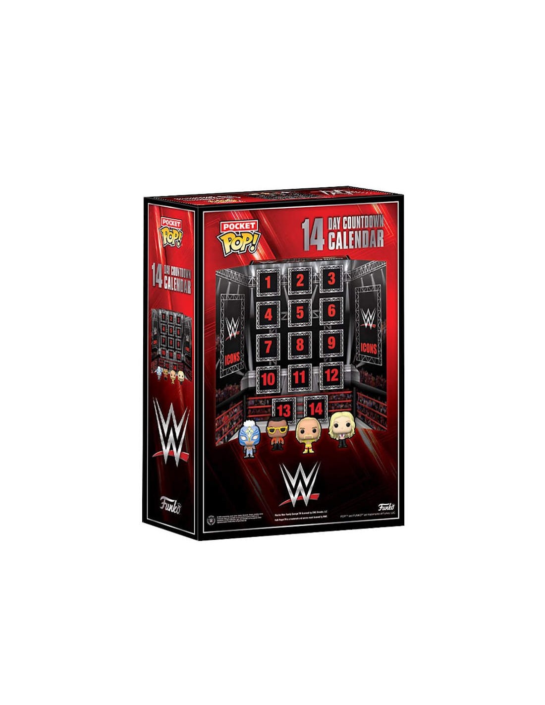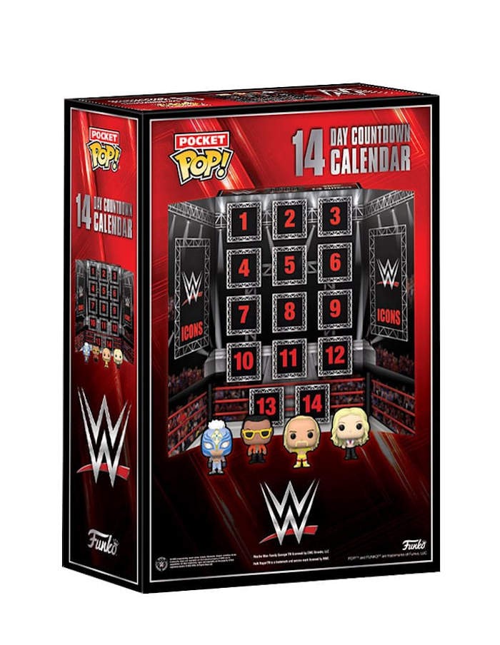 What smackdown combinations will you put in the ring when you add this 14 Day Countdown Calendar to your WWE collection? Pocket Pop! figures vary in height depending on character.