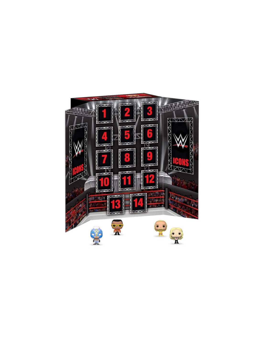 Apri le minuscole porte per rivelare 14 Funko Pocket Pop unici! con alcuni dei nomi più leggendari del wrestling professionistico, come Hulk Hogan, Chyna, Jerry Lawler, Bret Hart come queste splendide figure da 5 cm!