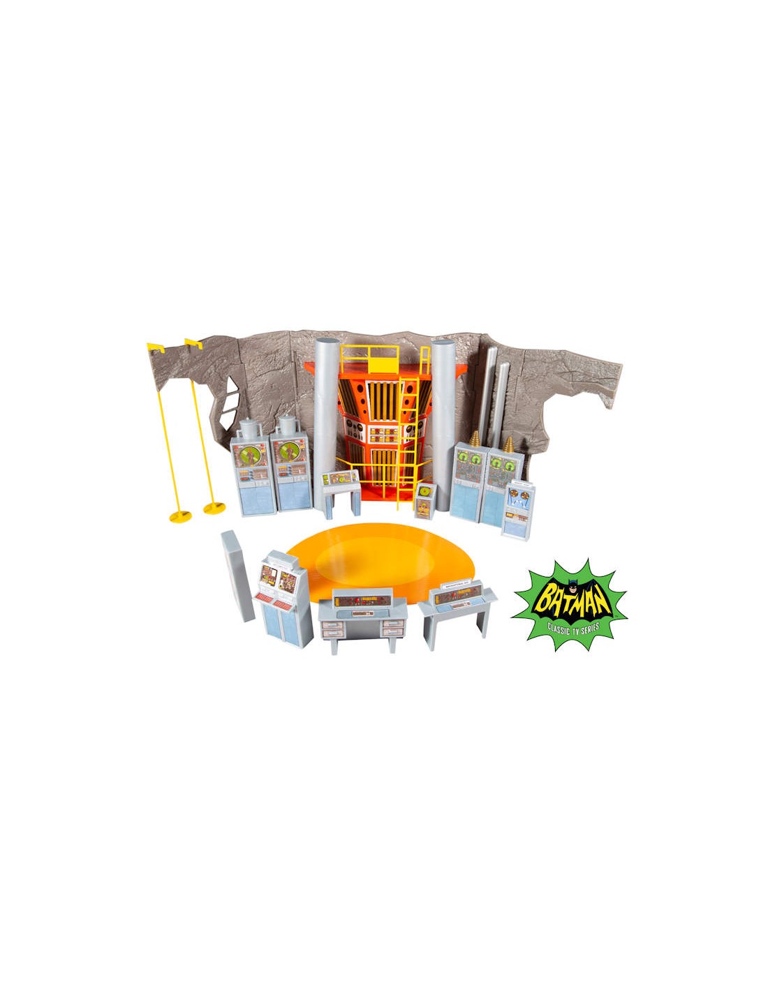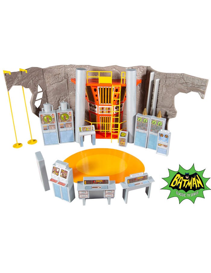 - Batcave comes with eight (monitors, machines, and batcomputer), batpoles, and loft with ladder, for Batman and Robin to fight crime and keep tabs on those dastardly villains