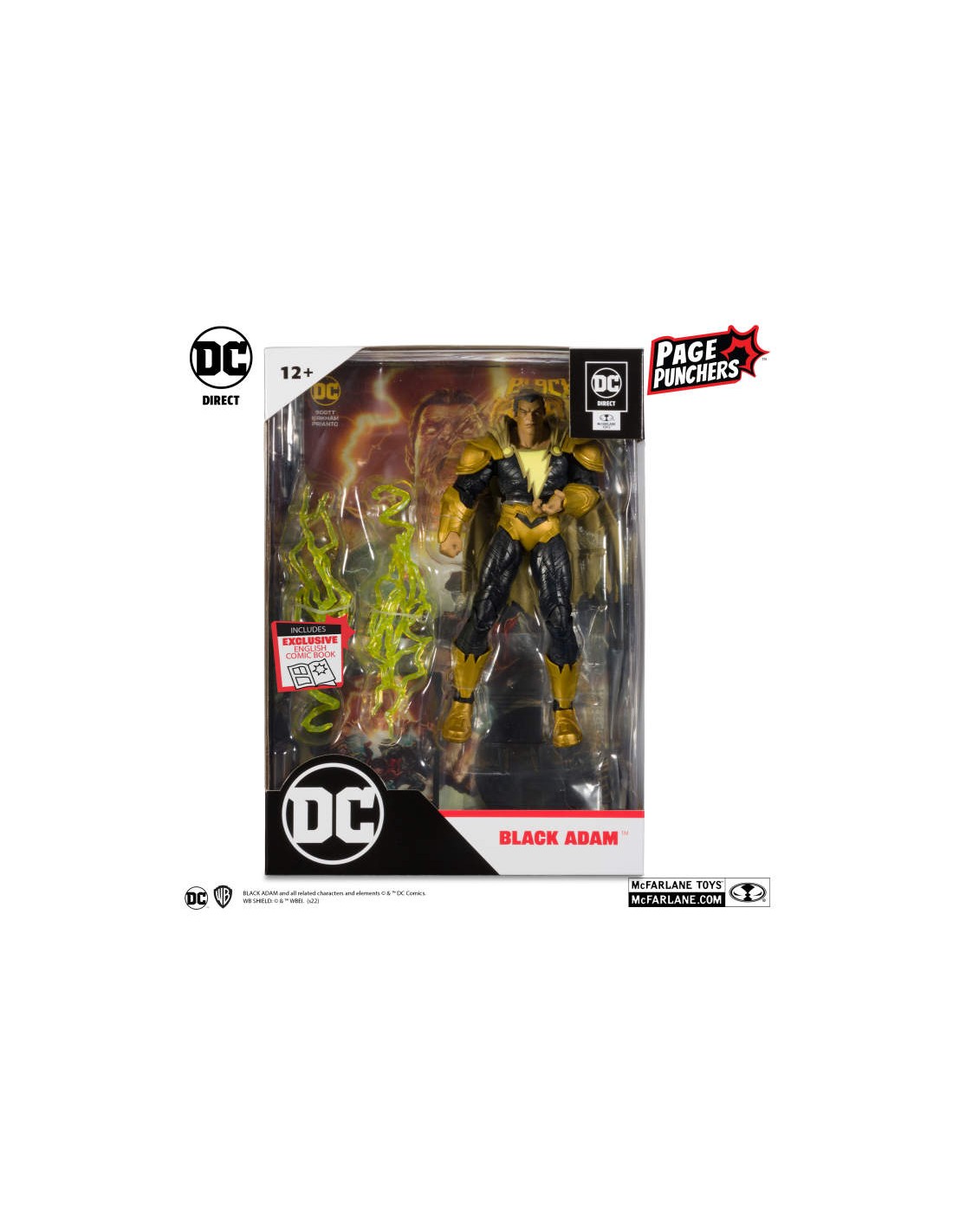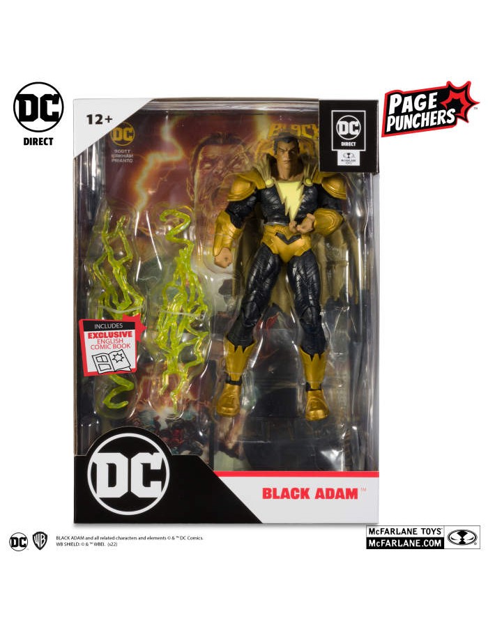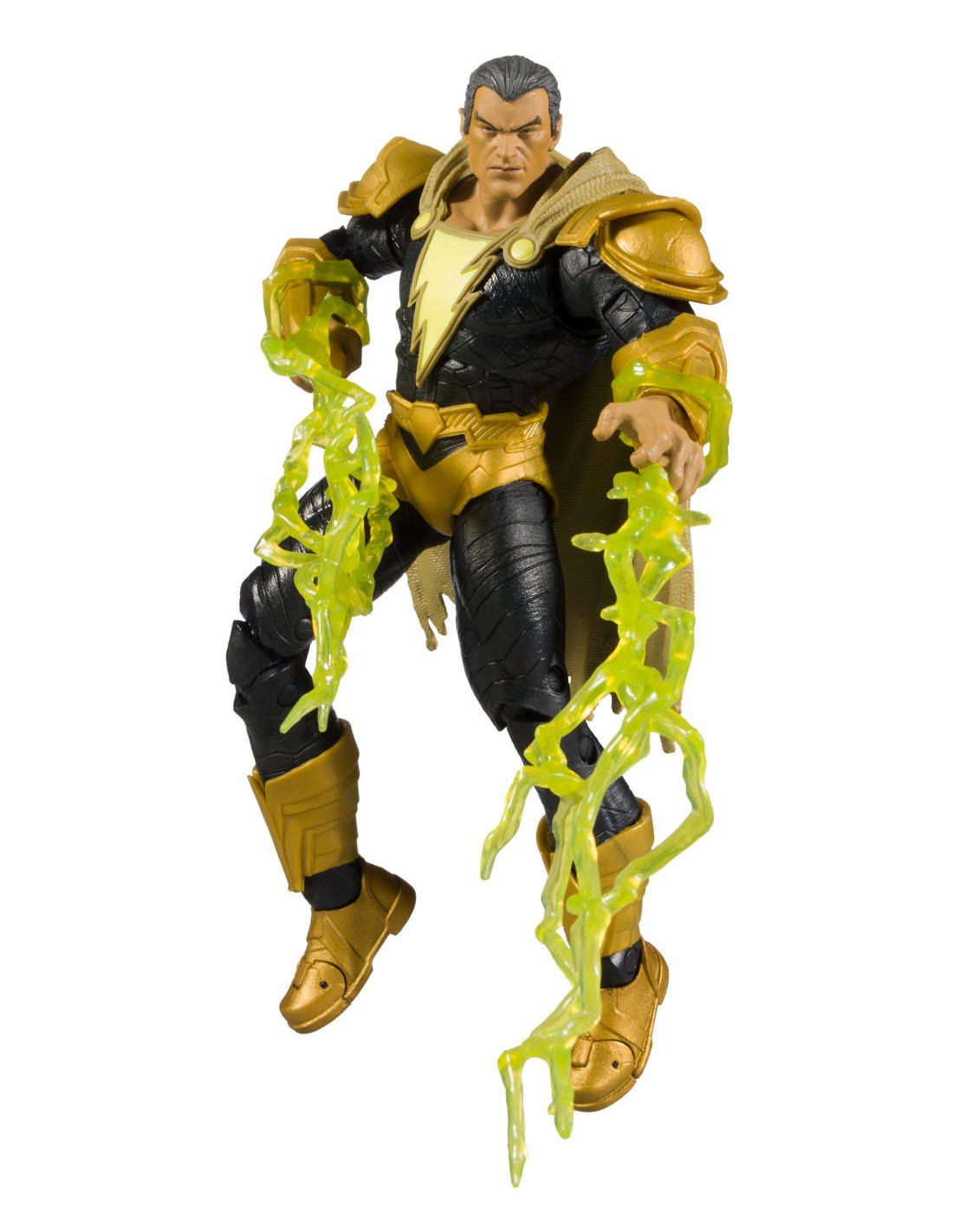 - Black Adam includes two attachable pieces of lightning, and a base