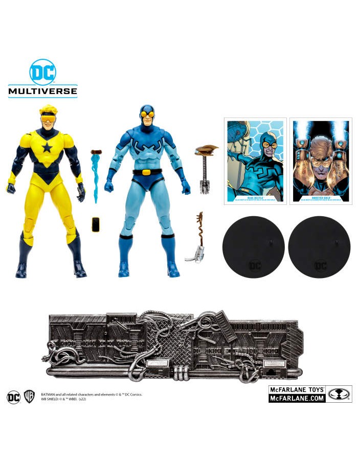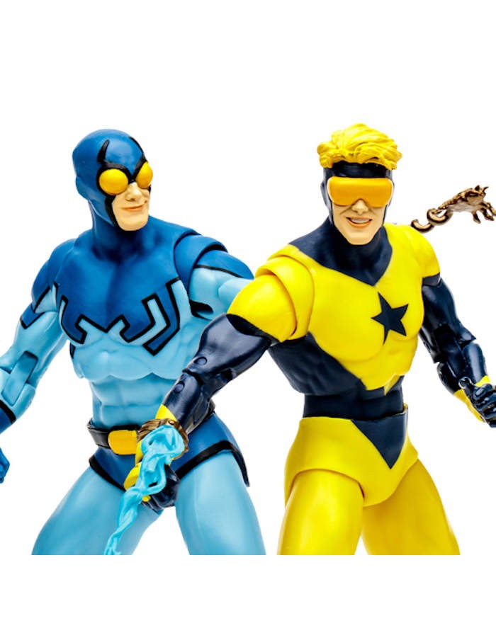 - Blue Beetle and Booster Gold are featured in their looks from the comic Blue Beetle & Booster Gold: Blue and Gold