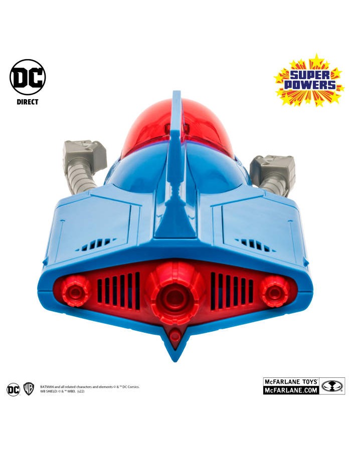 - Vehicle is showcased in DC Super Powers themed closed box packaging