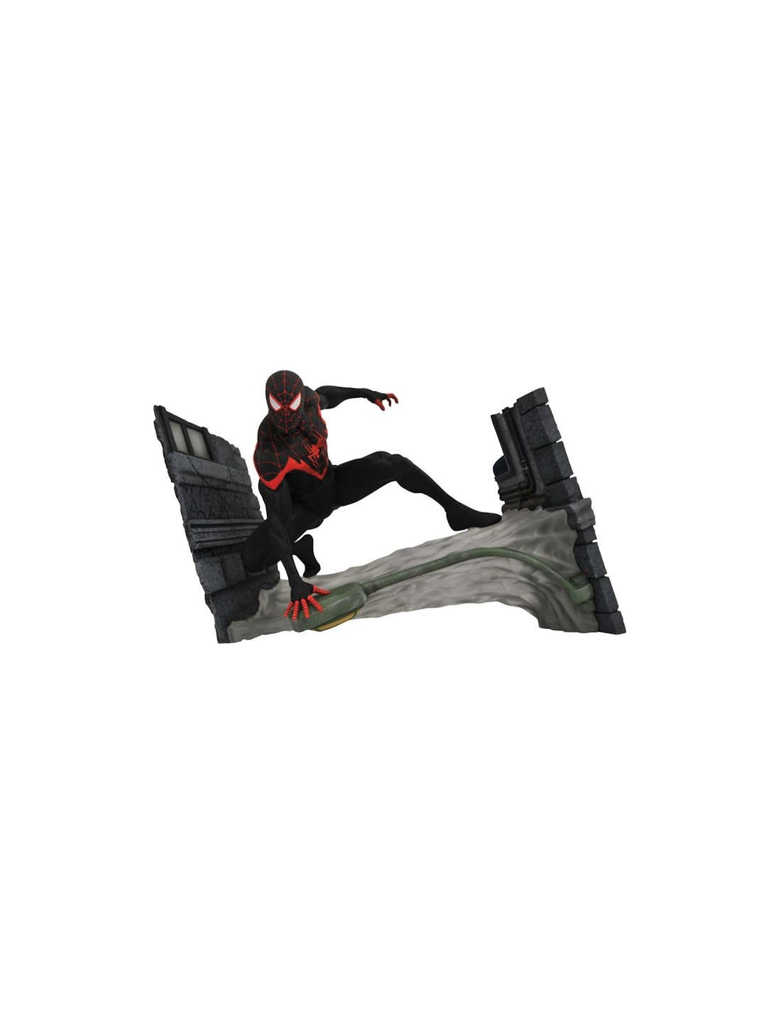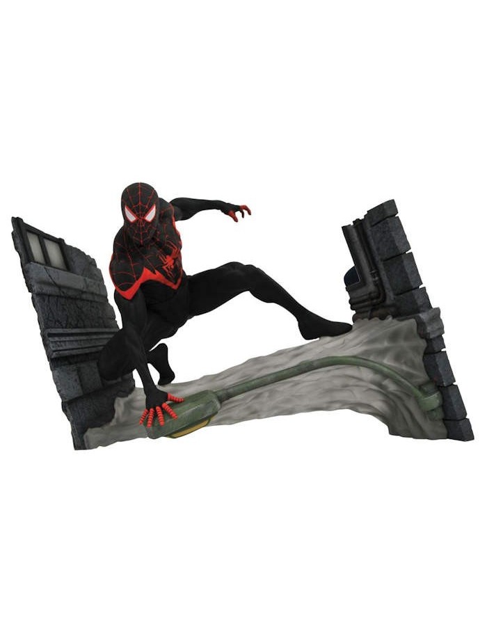 Welcome to the Spider-Verse! Miles Morales, a.k.a. Spider-Man, a.k.a. Spy-D, is a bonafide movie star and comic book superstar and now he joins the Marvel Gallery PVC diorama line! Crouched on a web slung across an alleyway, Miles lives up to his namesake in this all-new PVC sculpture portraying the hero in his element. Measuring approximately 7" high by 11 " wide, this detailed sculpt by Allerton is based on a design by Caesar and comes packaged in a full-color window box.