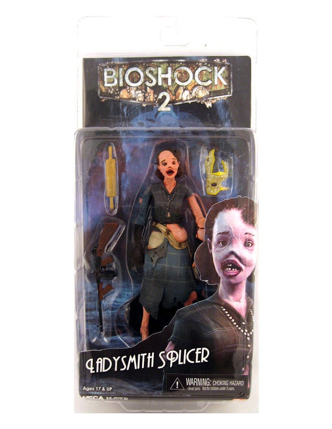 7″ Ladysmith Splicer that comes with a tommy gun, rolling pin and a removable mask.