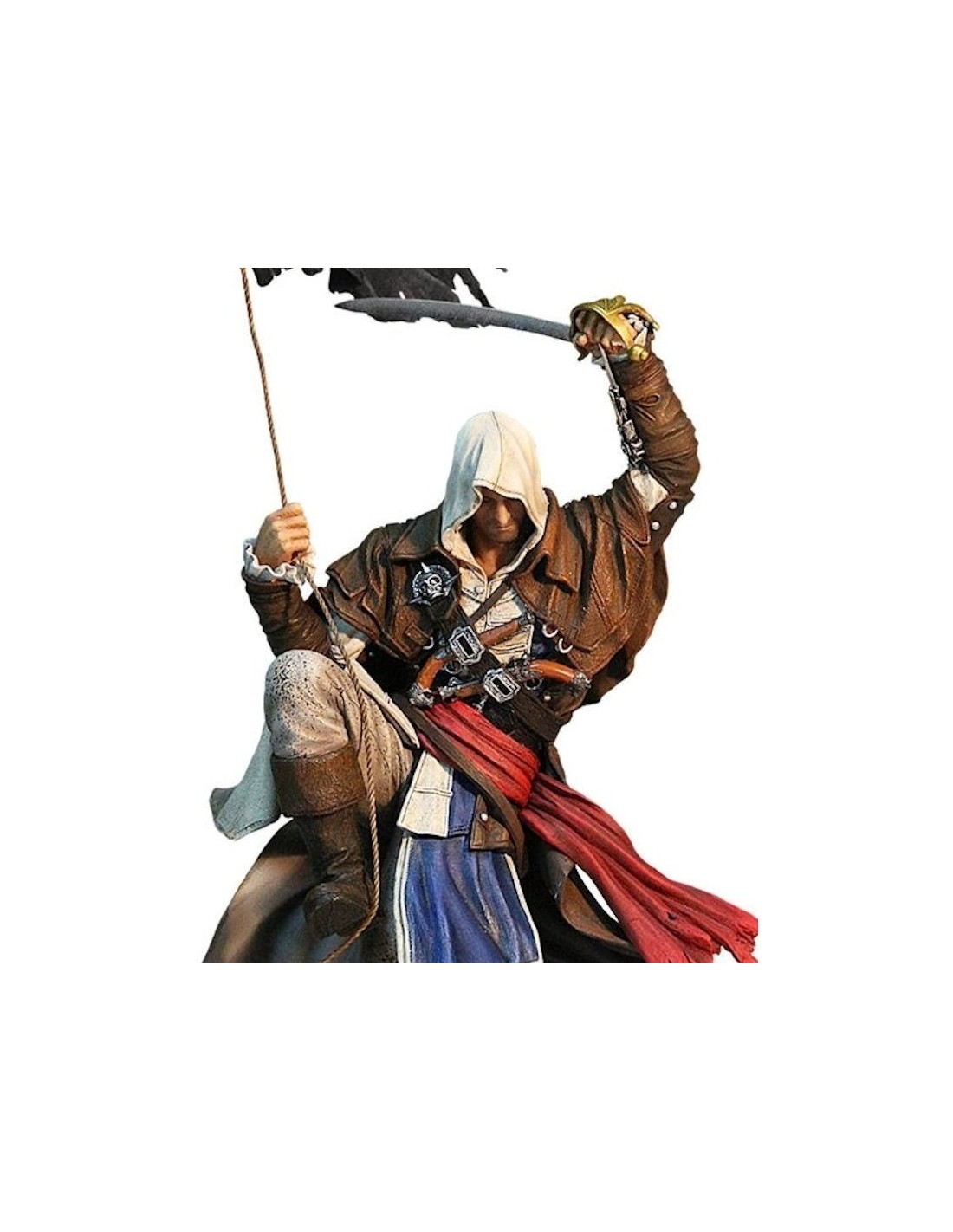 This high quality statue shows the master Assassin standing on the lookout post of his vessel "Jackdaw", ready to jump down with his drawn cutlass and deadly Hidden Blade under his wrist. His appearance with all the iconic weapons is highly detailed and was faithfully reproduced from the game. It is about 45cm tall and should definitely belong to your AC - collection! Limited product of only 5000 copies world wide, so get it now! Distributed by Gaya Entertainment.