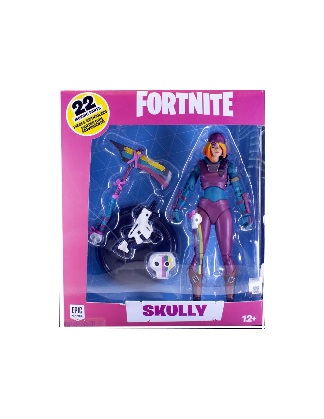 - Skully is showcased in premium glossy Fortnite-themed window box packaging